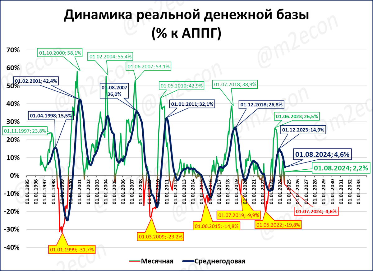Узкая денежная база: в реальном выражении падение достигло уже -9,4%.