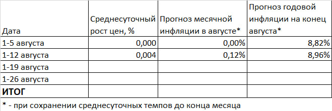 Если так будет до конца месяца, то по итогам августа инфляция составит 9,0% годовых.
