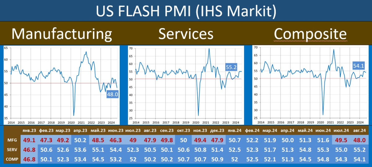 Опубликованы предварительные индексы деловой активности (PMI) за август.