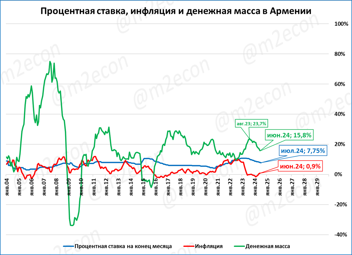 Ставка выше инфляции, и армянский ЦБ не торопится её снижать, несмотря на низкую инфляцию. И правильно делает.