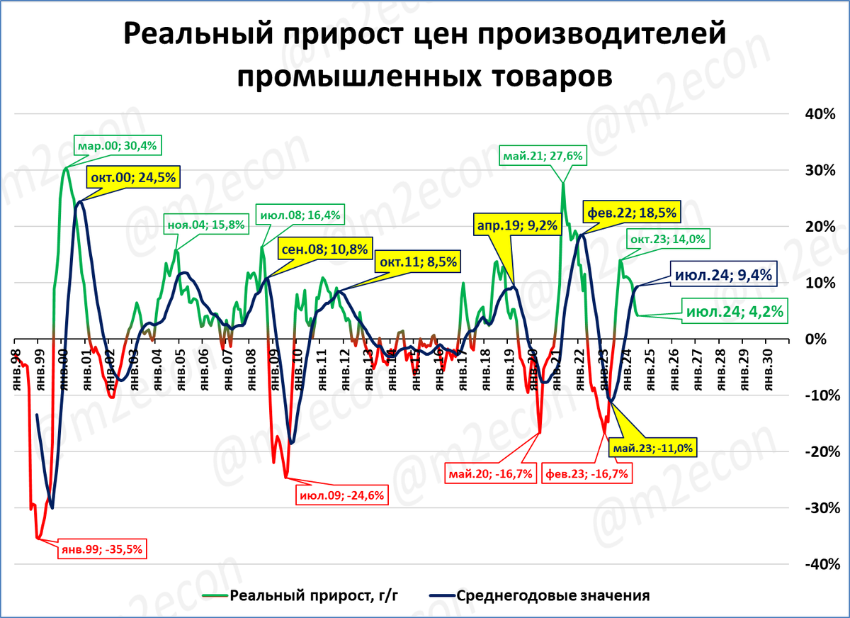 Цены производителей (13,7% годовых) росли быстрее потребительских цен (9,1%). Это позитивный сигнал.
