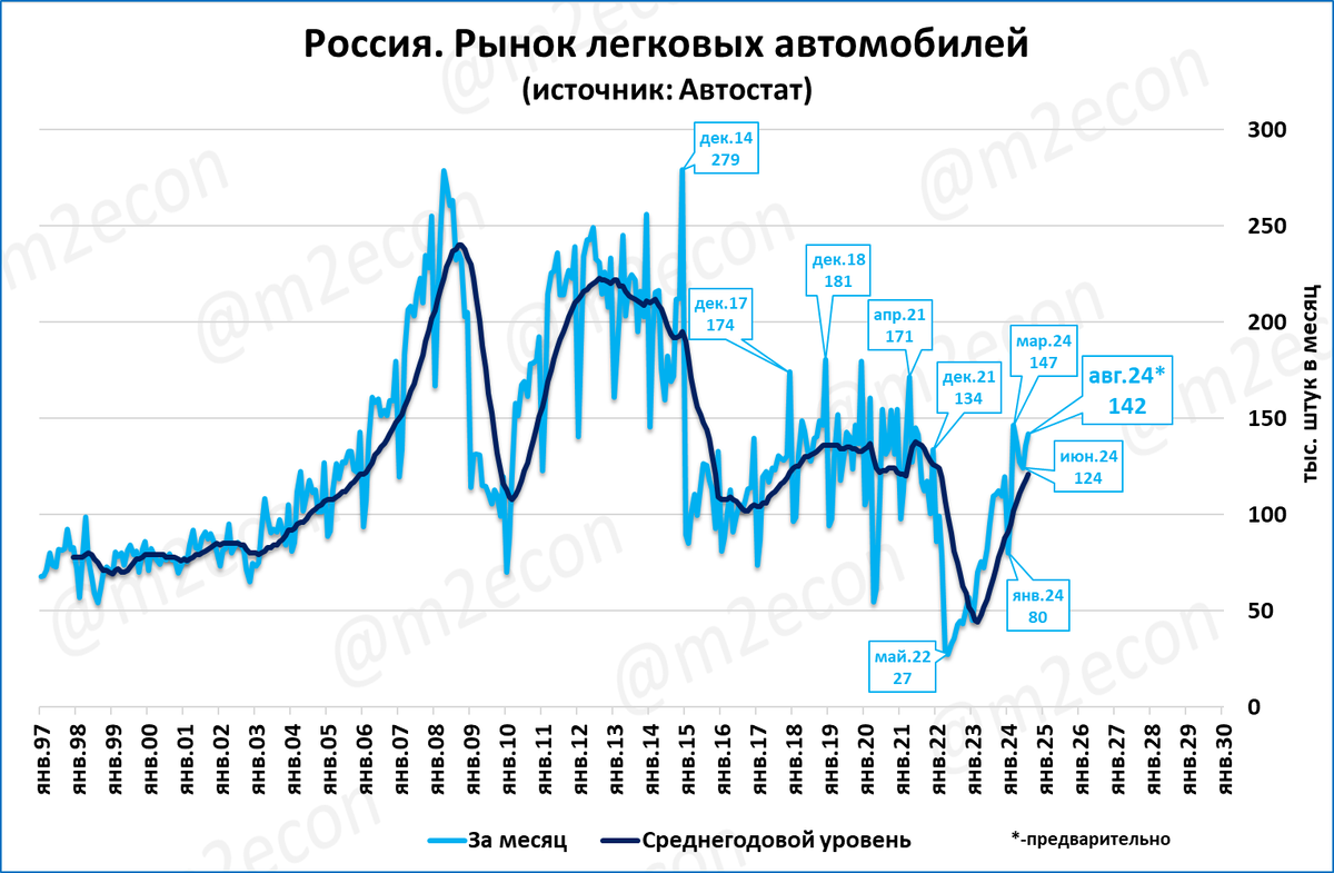 Это +29% к августу прошлого года. Ориентир итогов года: 1,58 млн. штук.