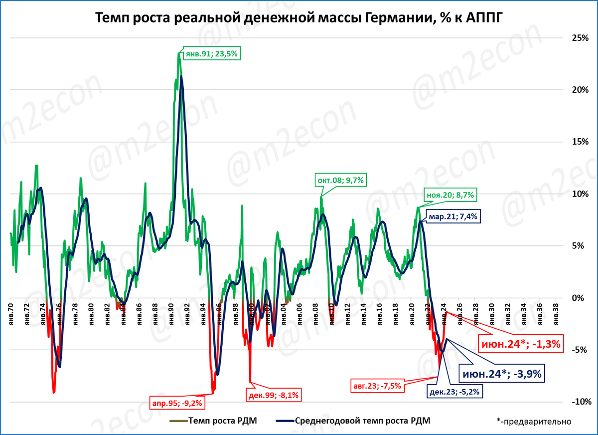 С 2019 года (почти за 5 лет) ВВП Германии вырос на 0,5%.