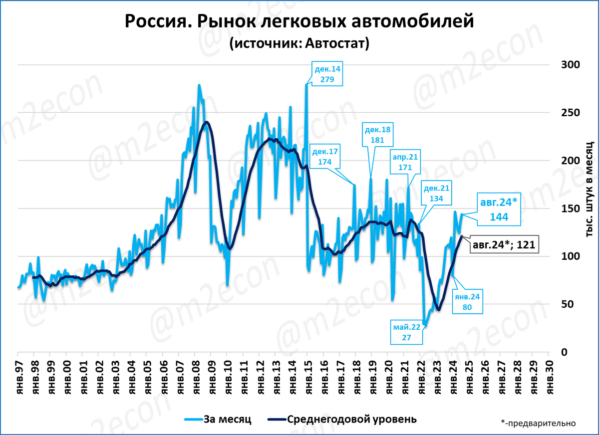 Судя по недельным данным Автостата, по итогам августа рынок легковых мог составить 144 тысячи штук.