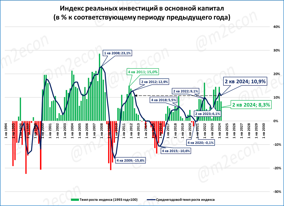 Можно выделить: инвестиции в основной капитал в 2024 году впервые превысят рекордные советские уровни.