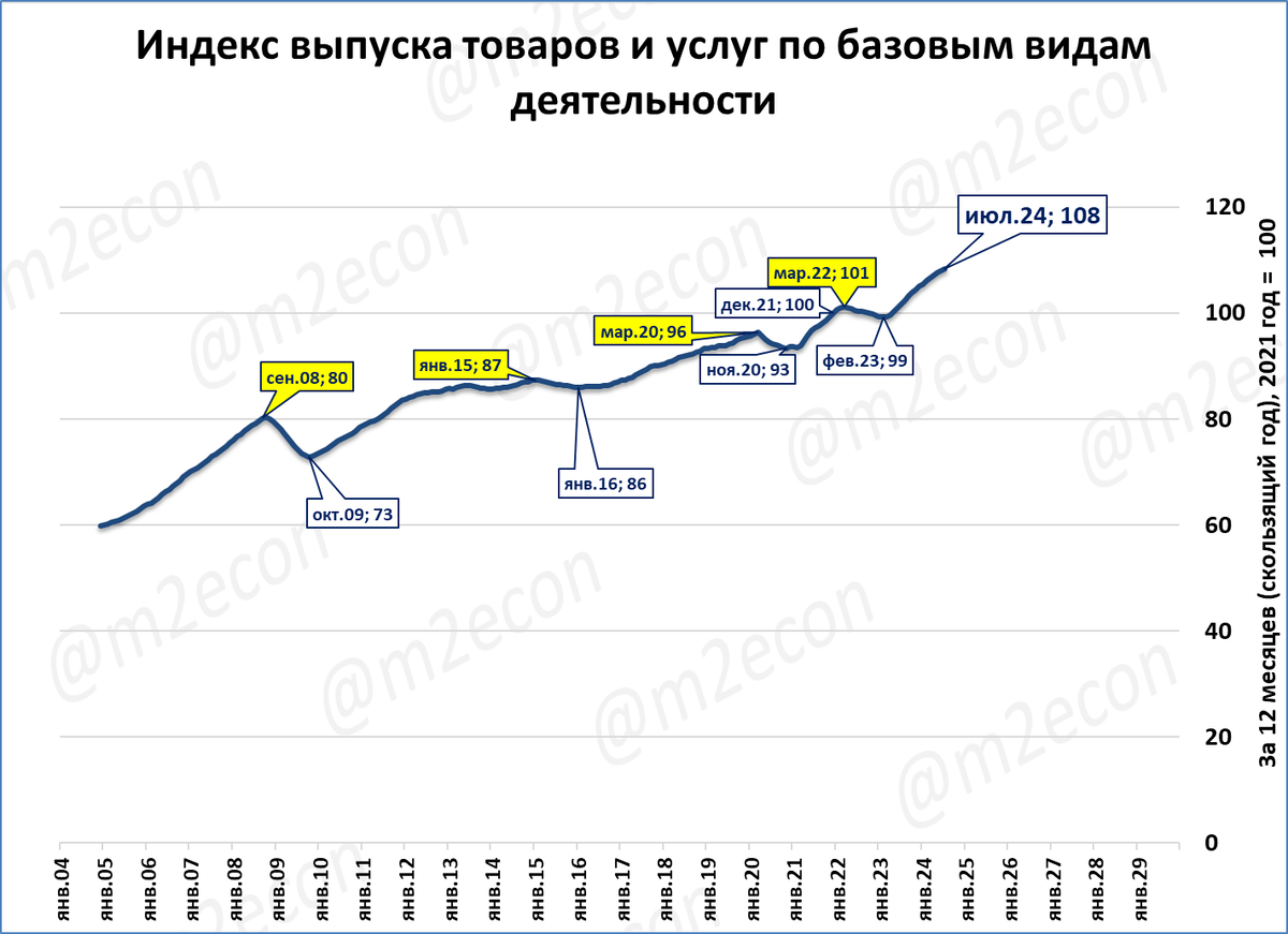 Выпуск базовых отраслей (это около 60% ВВП) в июле составил 111% к среднемесячному уровню 2021 года.