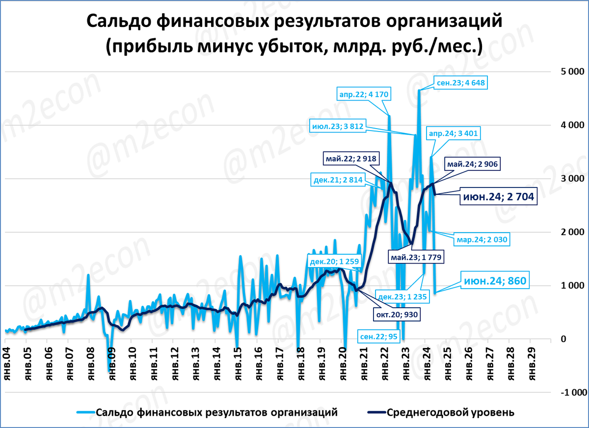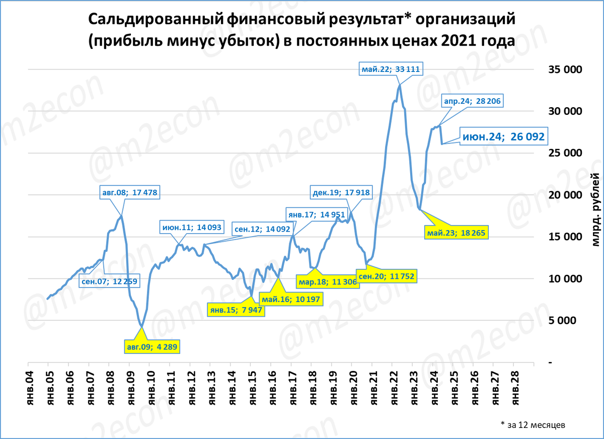 При этом прибыль за последние 12 месяцев остаётся высокой: 26 трлн рублей в ценах 2021 года.