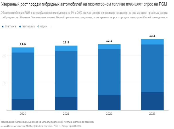По данным производителя катализаторов и специалиста по МПГ Johnson Matthey, слабые продажи EV означают, что совокупные продажи бензиновых и гибридных автомобилей, которые, как ожидалось, в прошлом году не изменились, выросли на 9%.