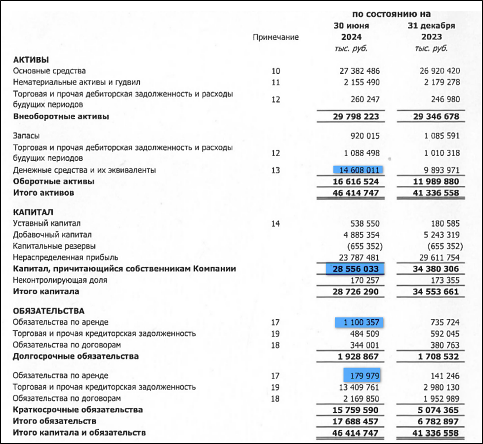 Обязательства по аренде 1,3 млрд (+46% с начала года).