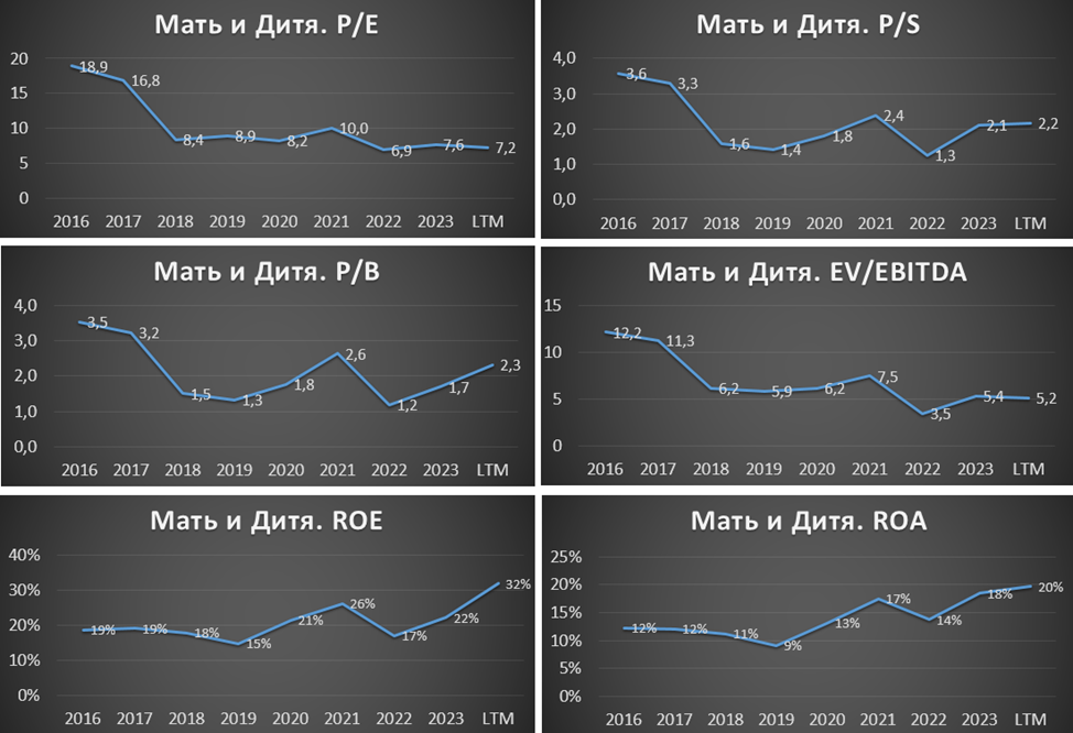 Рентабельность по EBITDA = 33%; ROE = 32%, ROA = 20%
