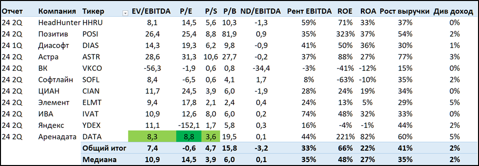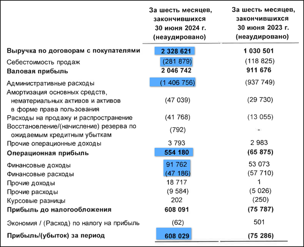 Убыток 1П 2023 связан с сезонностью бизнеса, присущую российским IT компаниям, когда основные продажи приходятся на второе полугодие. Но в 2024 году (перед IPO) компания поработала над сглаживанием этой сезонности. Именно этим объясняется аномальный рост результатов в 1П 2024. Очевидно, что второе полугодие в плане роста должно быть поскромнее.