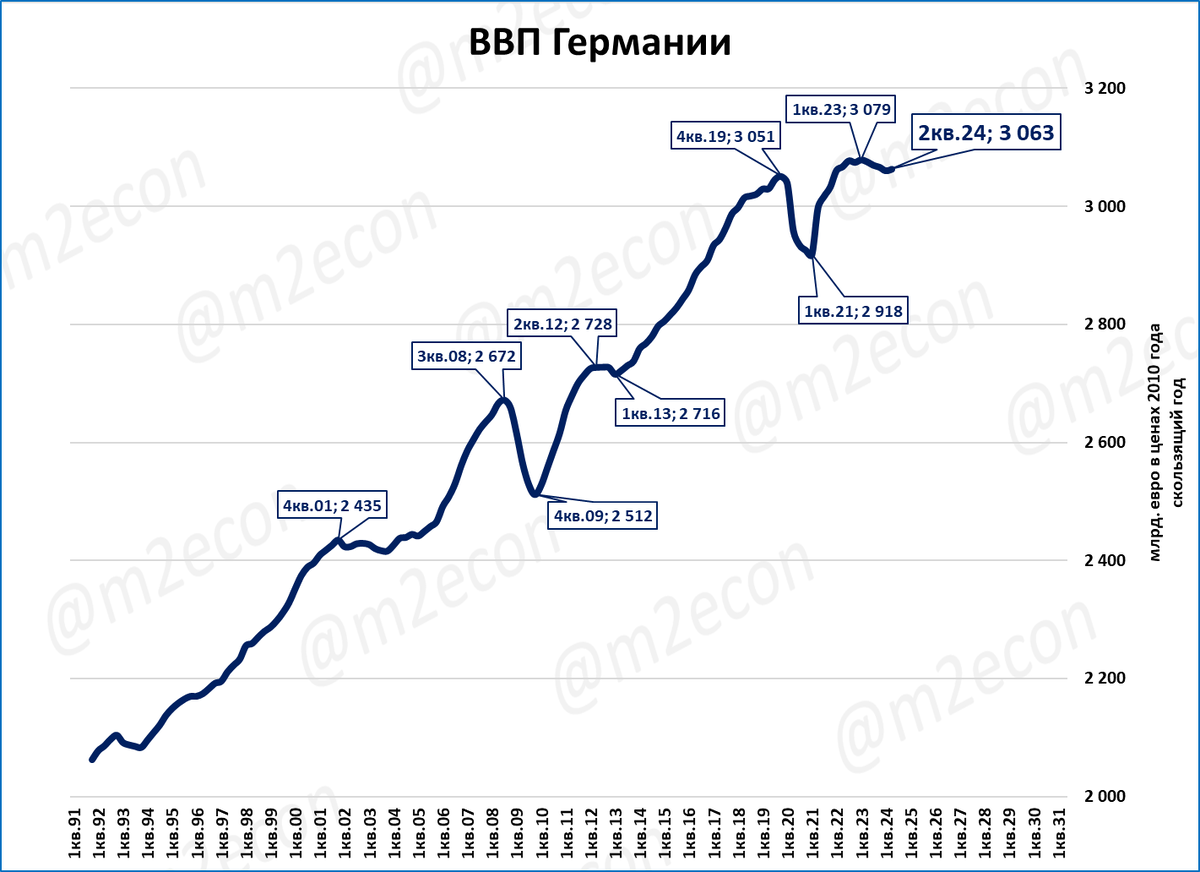 ВВП Германии во 2 квартале 2024 года вырос на 0,3% ко 2 кварталу 2023 года.