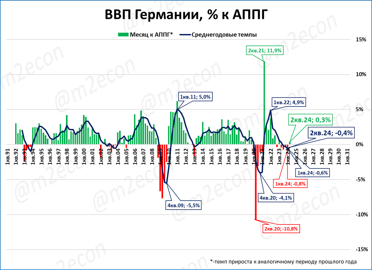 С 2019 года (почти за 5 лет) ВВП Германии вырос на 0,5%.