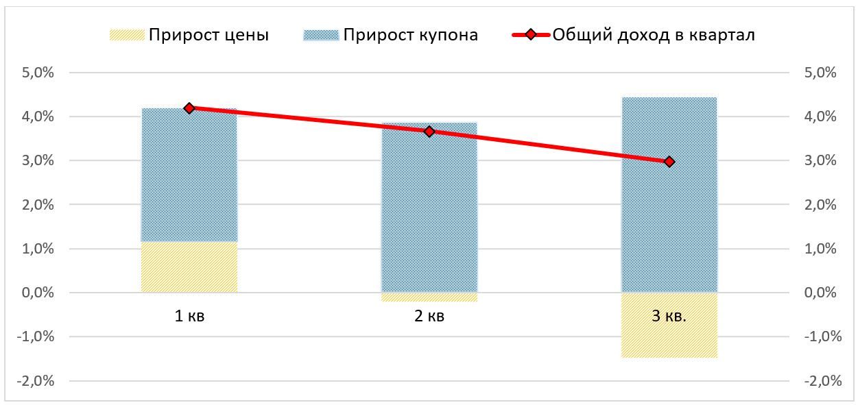 Тем не менее нельзя не заметить снижение темпа роста дохода, сгенерированного в 3К24 флоатерами. Это стало следствием снижения цен этих бумаг, что не удалось в полной мере компенсировать даже растущими купонными платежами из-за повышающихся процентных ставок в экономике.