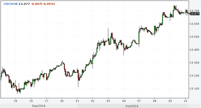 Курс валютной пары юань/рубль, вероятно, останется около уровней 13,7–13,8 до конца текущей недели, однако с понедельника, 14 октября, волатильность торгов на рынке может усилиться, считают аналитики банка «Санкт-Петербург». Сейчас на валютный рынок по-прежнему оказывают влияние факторы, связанные с близостью 12 октября — даты, когда заканчивается лицензия OFAC на завершение операций с Мосбиржей.