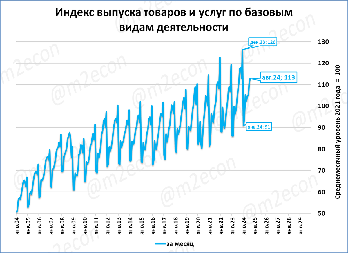 Выпуск базовых отраслей (ВБО; это около 60% ВВП) в июле составил 113% к среднемесячному уровню 2021 года.