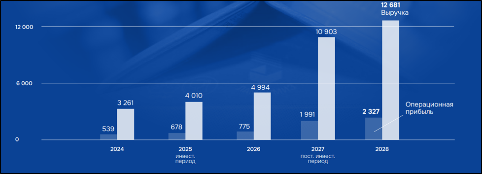 У компании есть стратегия развития, которая предусматривает рост выручки к 2028 году в 3,5 раза, а рост операционной прибыли в 4,3 раза.