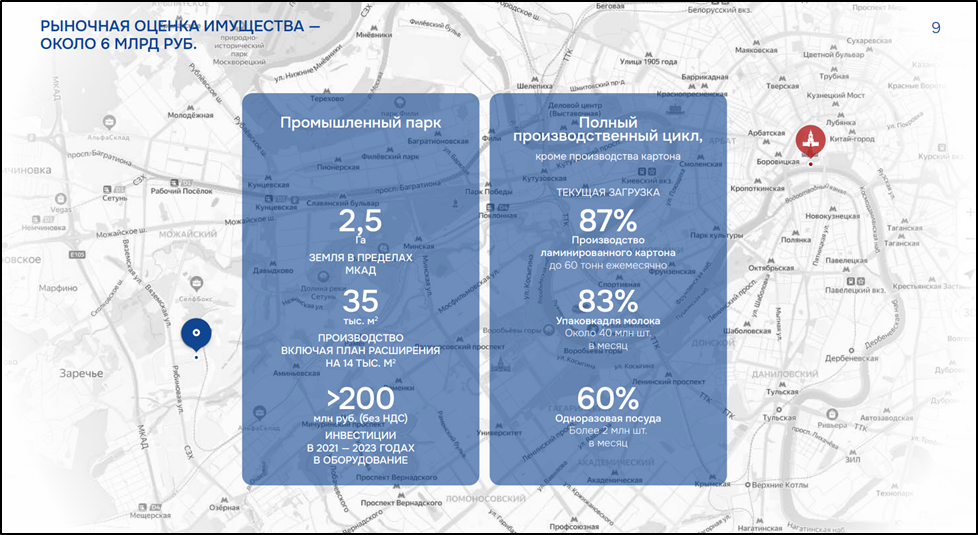 По оценке Ламбумиз, их промышленный комплекс в пределах МКАД и оборудование оцениваются более чем в 6 млрд. Т.е. 70% от предполагаемой капитализации.
