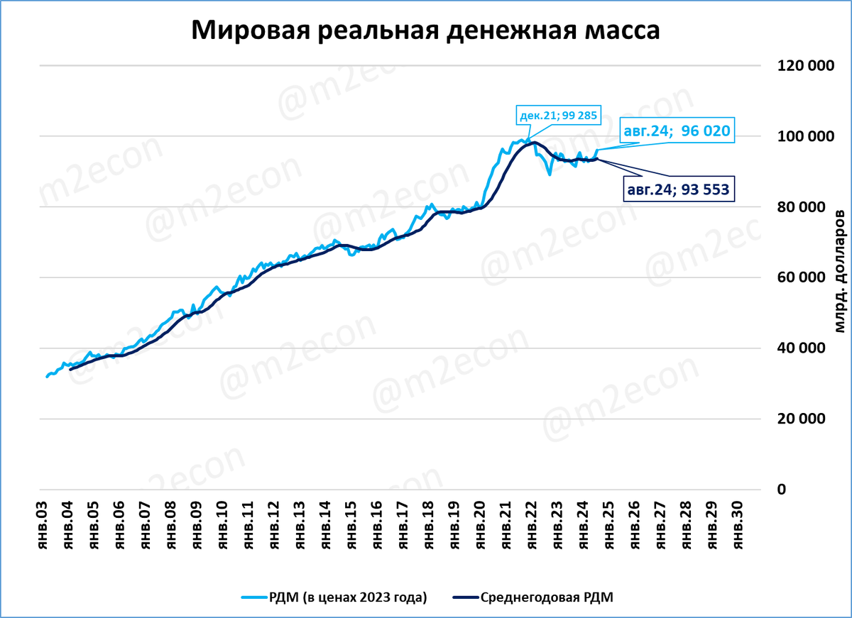 Зная инфляцию, мы можем посчитать мировую реальную денежную массу (РДМ).