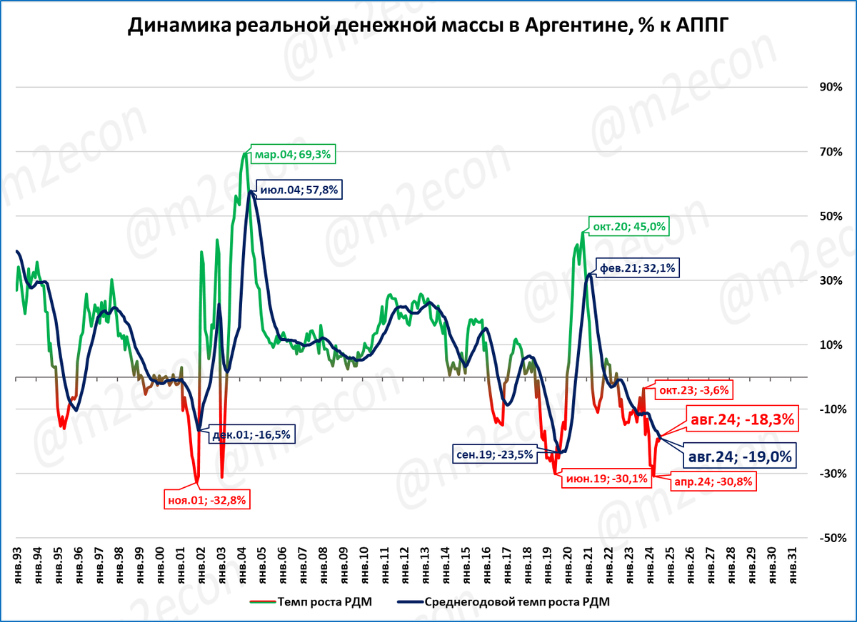 В реальном выражении, с учётом инфляции, продолжается падение денежной массы (-18,3%).