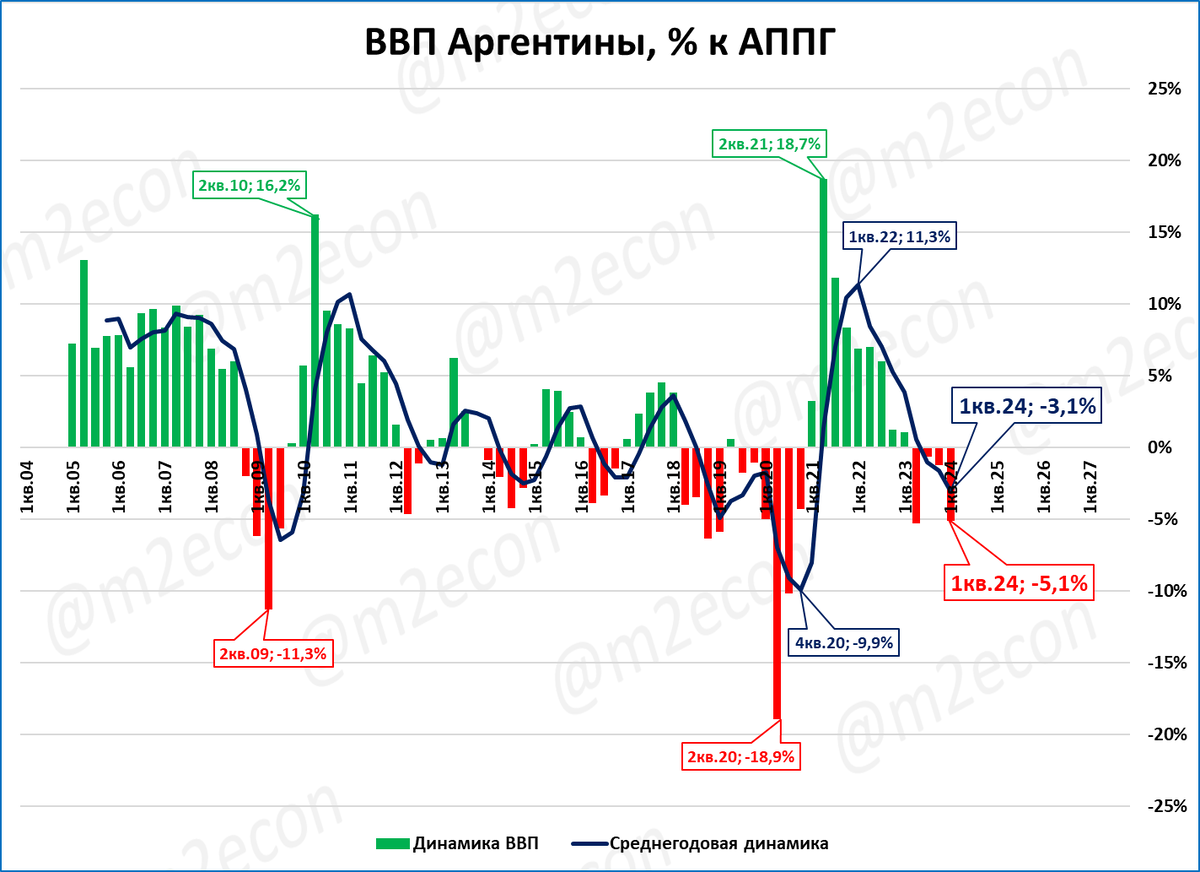 Падение ВВП в Аргентине в 1 квартале 2024 года составило -5,1%