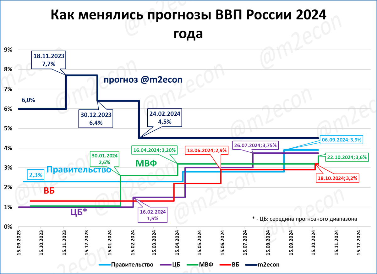 Всемирный банк пересмотрел прогноз 2024 года по России с 2,9 до 3,2%, а затем свой прогноз в лучшую сторону пересмотрел и МВФ (с 3,2 до 3,6%).