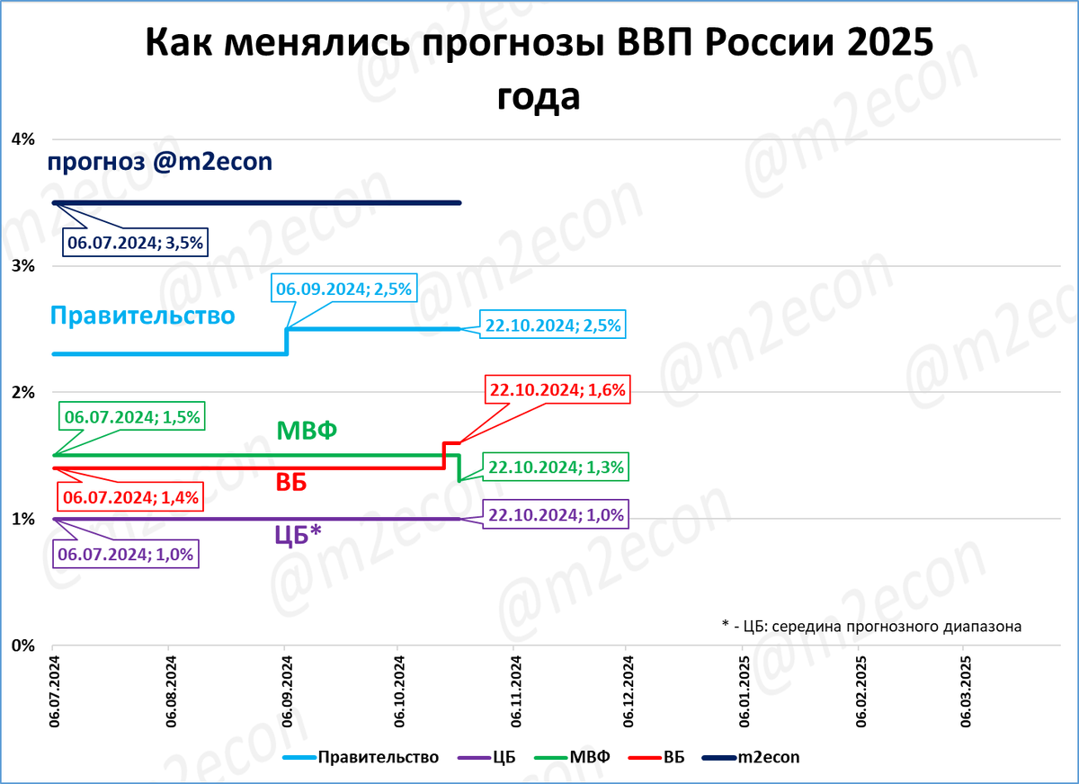 Отметим, что наш прогноз предполагал существенный рост экономики России ещё осенью прошлого года, когда большинство прогнозов других организаций предполагало рост на 1-1,5%. И уже тогда мы предполагали, что прогнозы МВФ, ВБ и других будут пересматриваться в сторону повышения.