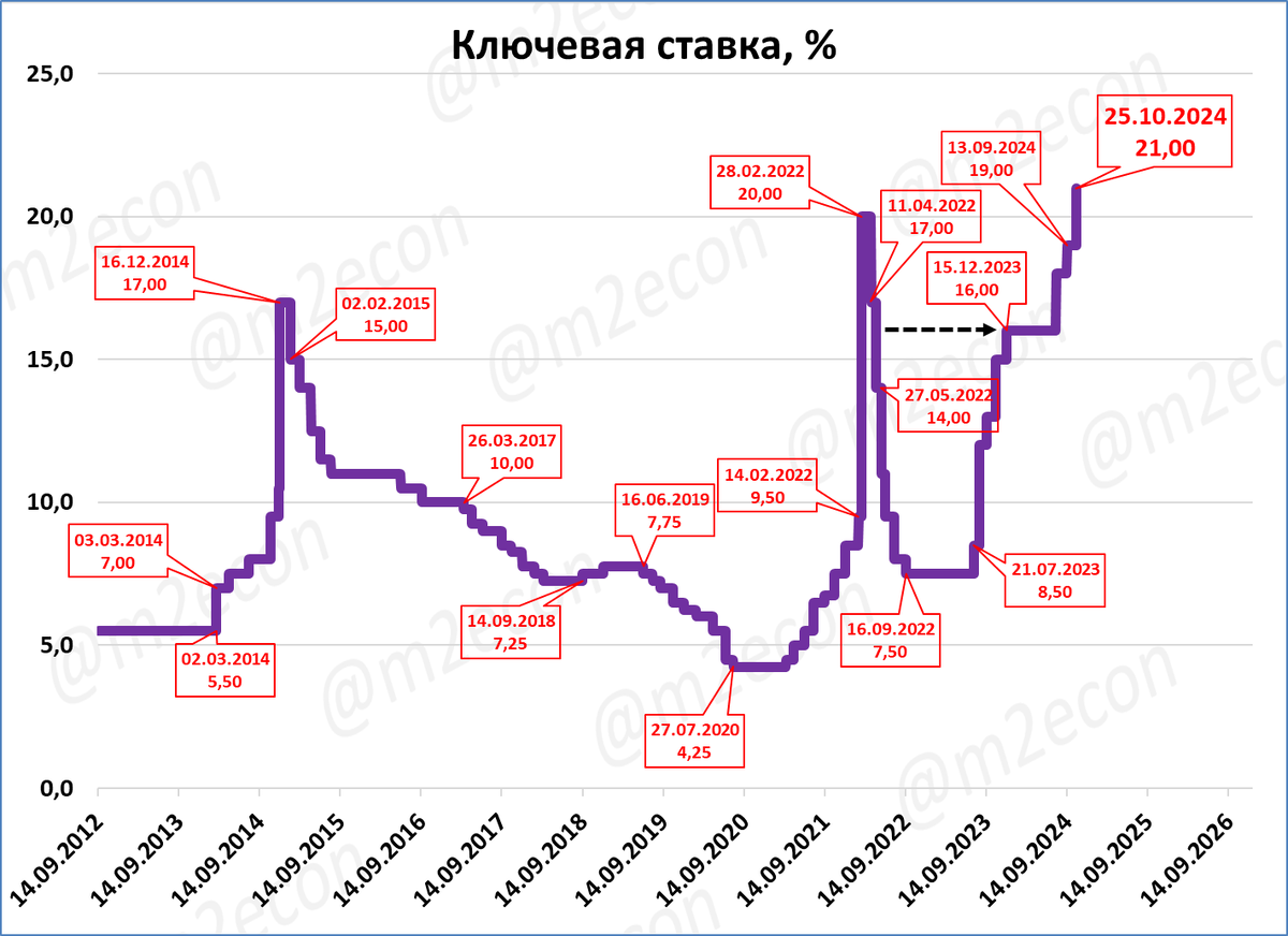 ЦБ РФ на заседании Совета директоров принял решение повысить ключевую ставку с 19% до 21%.