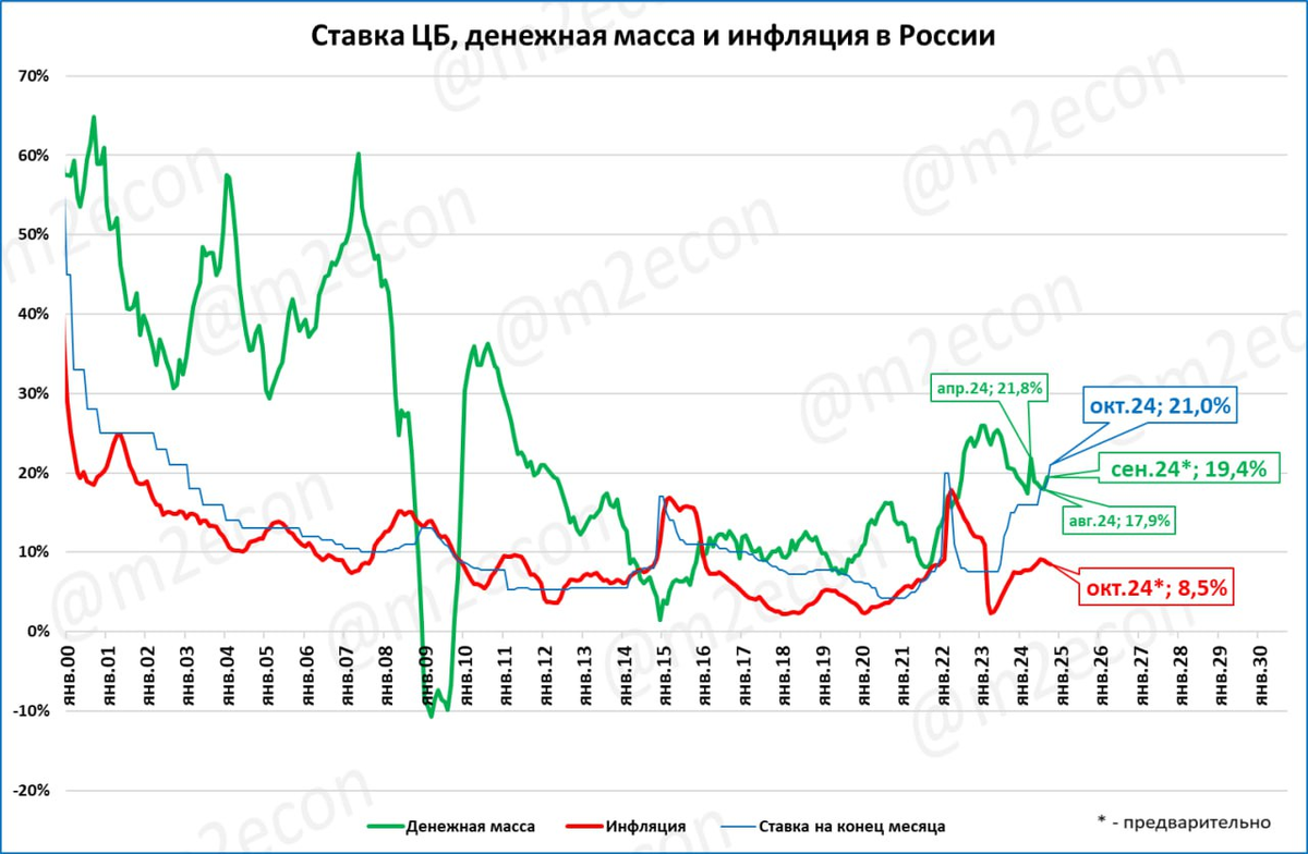 Номинальные темпы роста денежной массы при этом составили 175,2 % годовых (итоги сентября). Денежная масса растёт медленнее цен.