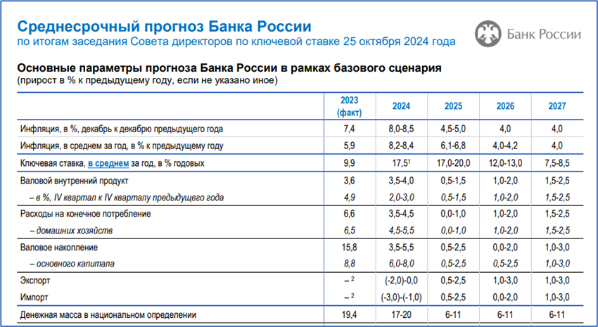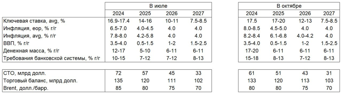 ЦБ обновил свои прогнозы по многим показателям, см. таблицу ниже.