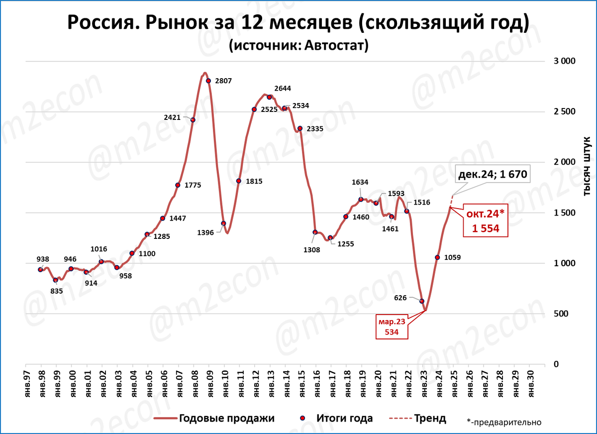 Данные последних недель настолько оптимистичны, что текущий тренд говорит о возможности выхода на планку 1,7 млн. штук по итогам 2024 года.