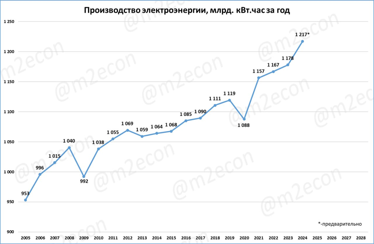 При этом объёмы за 2024 год будут рекордными и впервые в истории превысят 1,2 трлн кВт-часов.