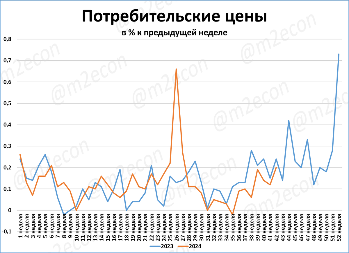 Рост цен за 42-ю неделю года составил 0,2%. Достаточно высоко.