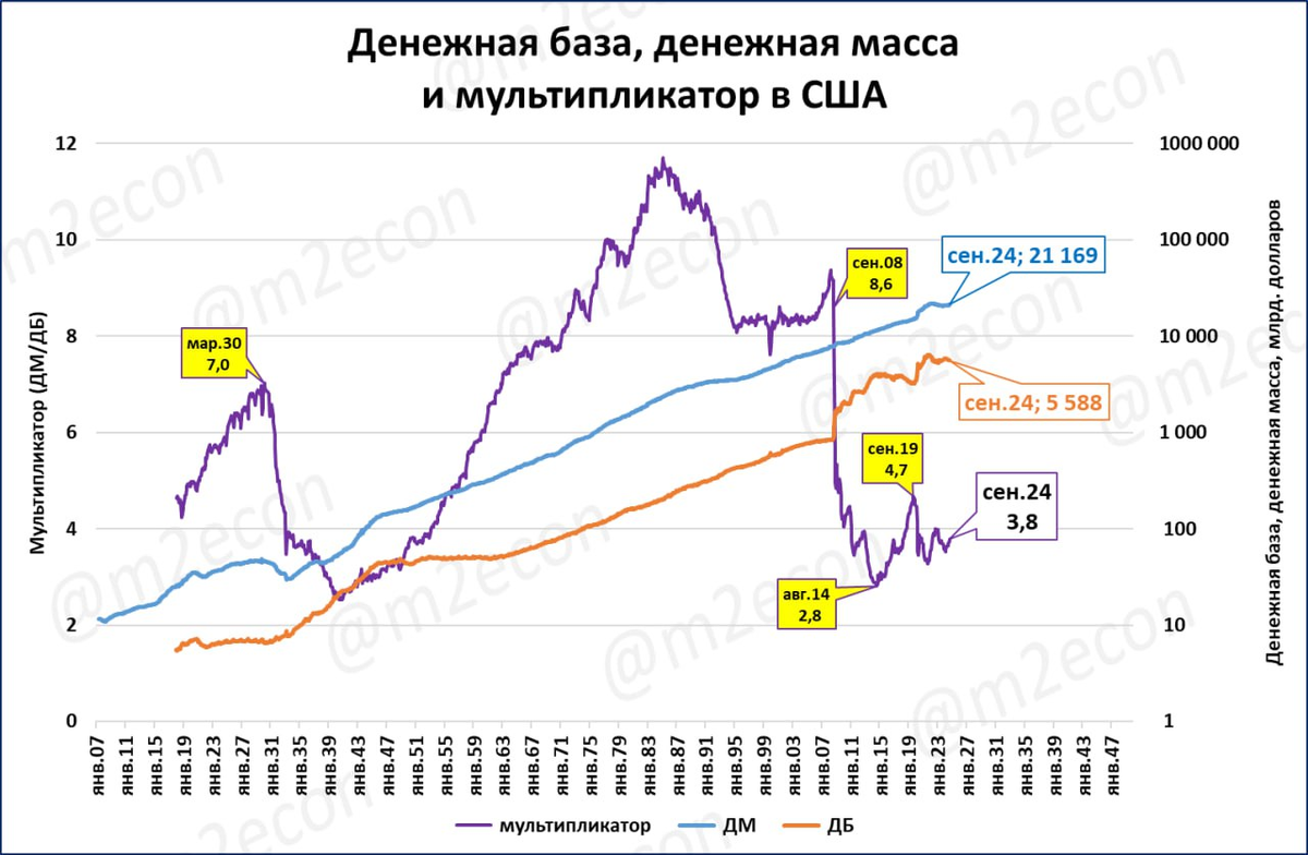 А значит, падать ему особенно некуда. Сейчас у ФРС остаётся единственный способ обрушить денежную массу – резко сократить денежную базу.