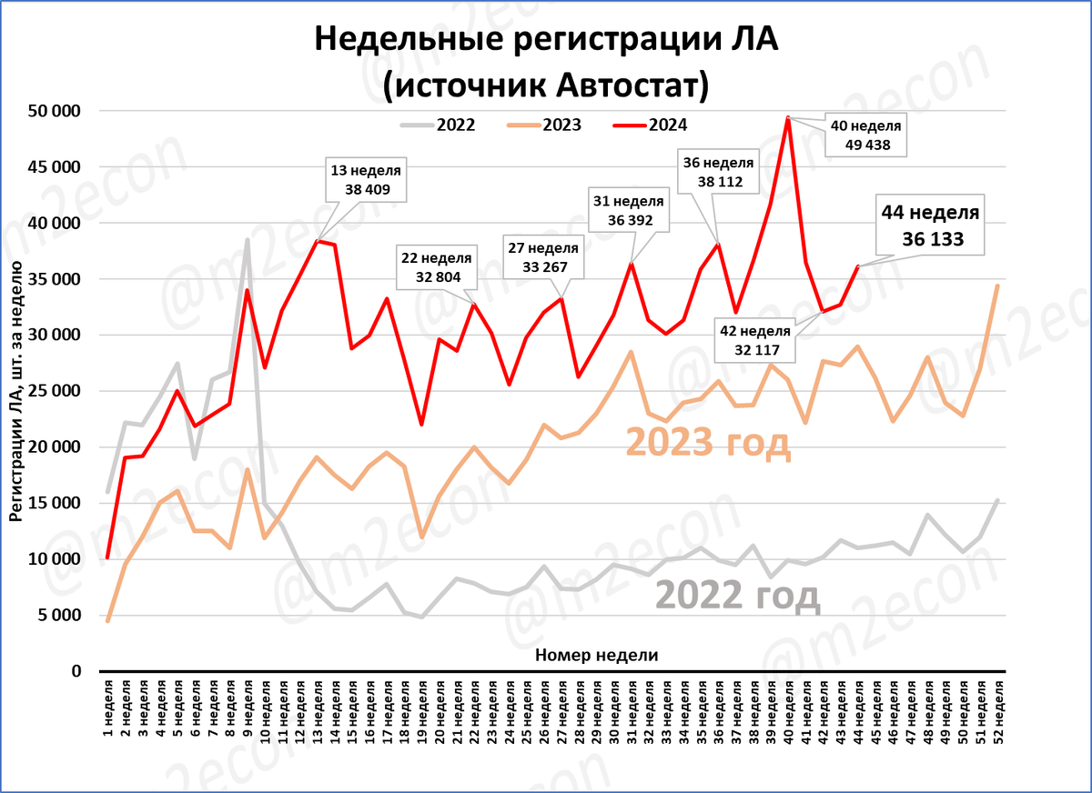 На 44-й неделе было зарегистрировано 36,1 тыс. легковых автомобилей (Автостат).