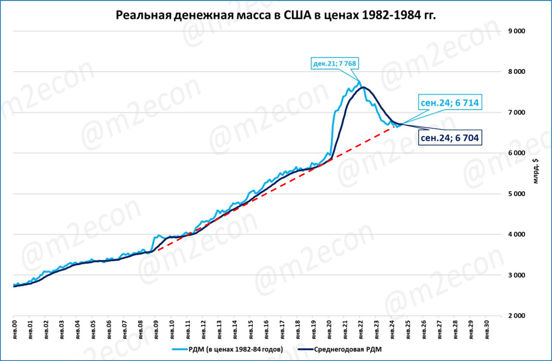 После снижения РДМ в США всего лишь вернулась на траекторию, которая была характерна для неё в последние 15 лет (см. красный пунктир на графике ниже).