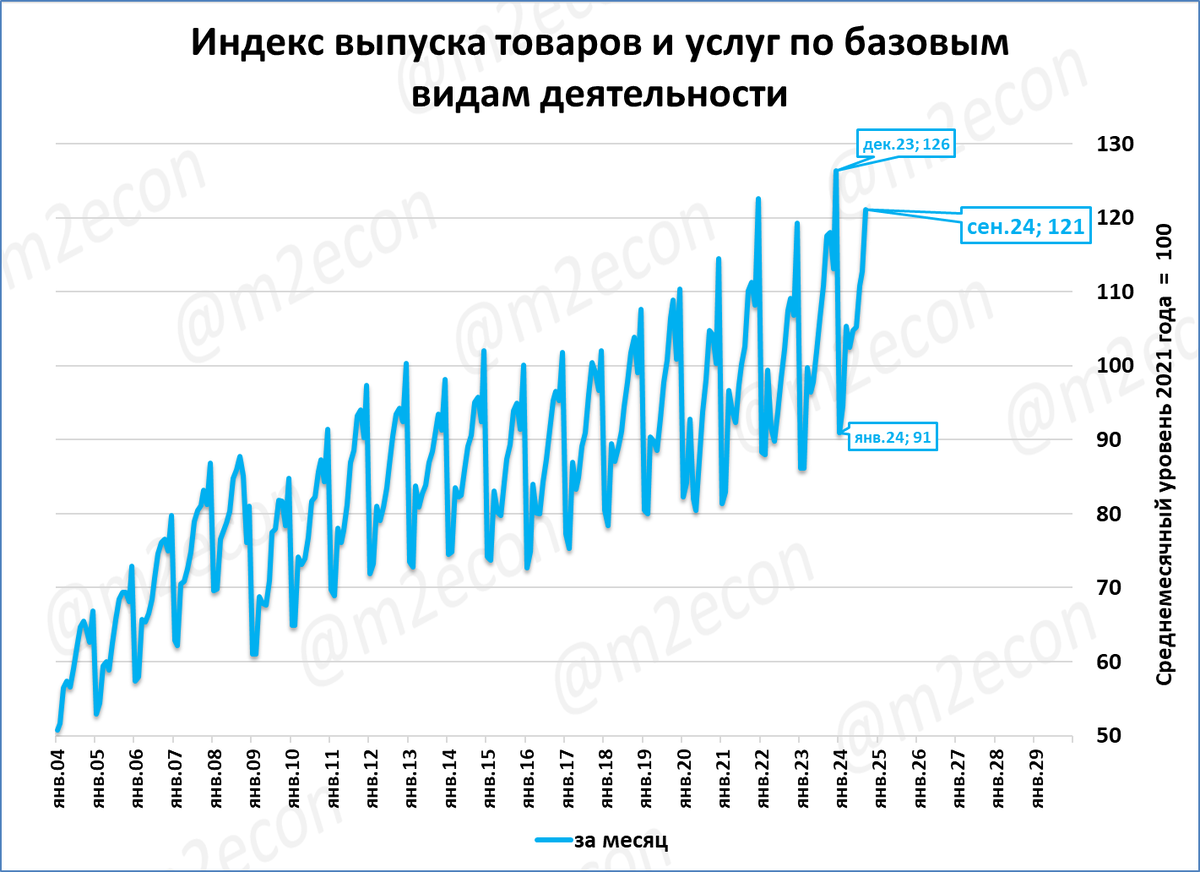 Выпуск базовых отраслей (ВБО; это около 60% ВВП) сентябре составил 121% к среднемесячному уровню 2021 года.