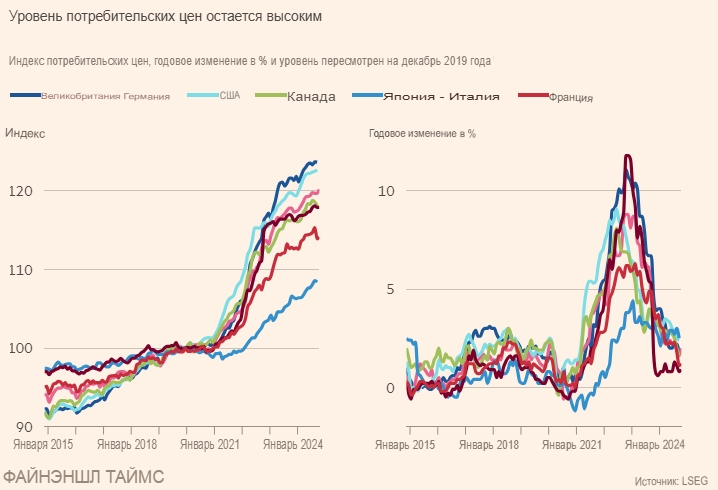 Неудовлетворённость потребителей высокими ценами продолжает наносить ущерб правительствам стран с развитой экономикой, даже несмотря на то, что уровень инфляции снижается до нормальных значений. Резкое увеличение расходов, происходящее раз в поколение, оставляет после себя негативное наследие для действующих политиков.