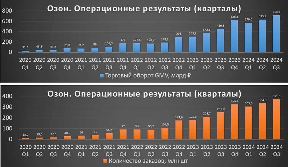 В 3Q 24 Озон продолжает демонстрировать рост операционных результатов: