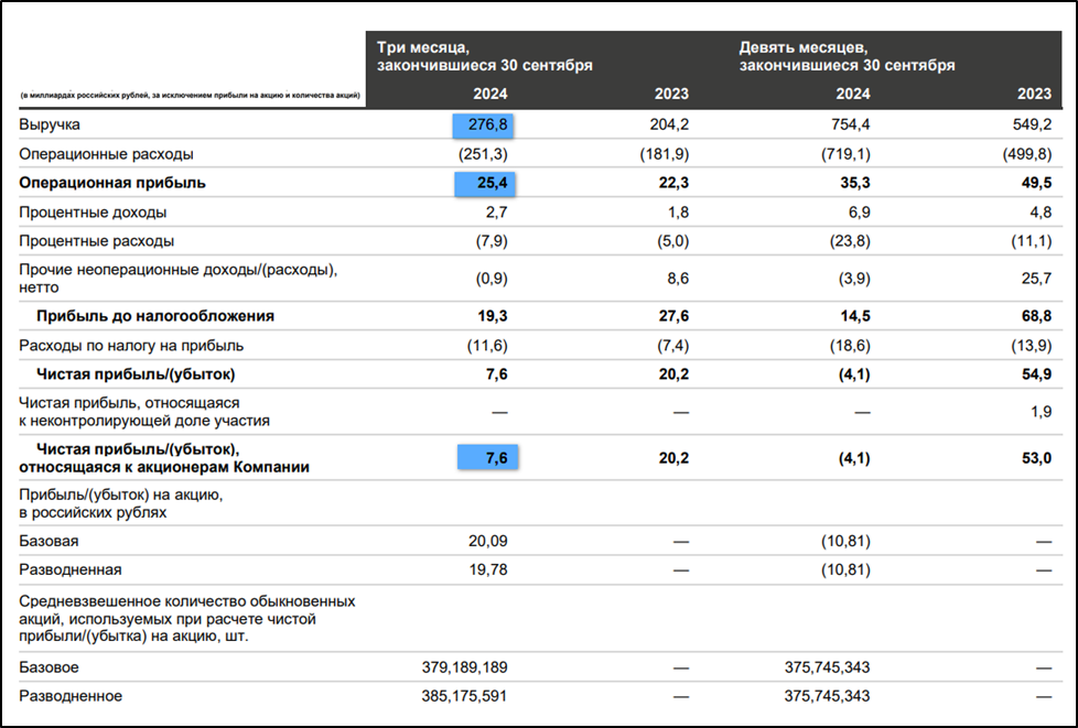 Результаты за 9М 2024: