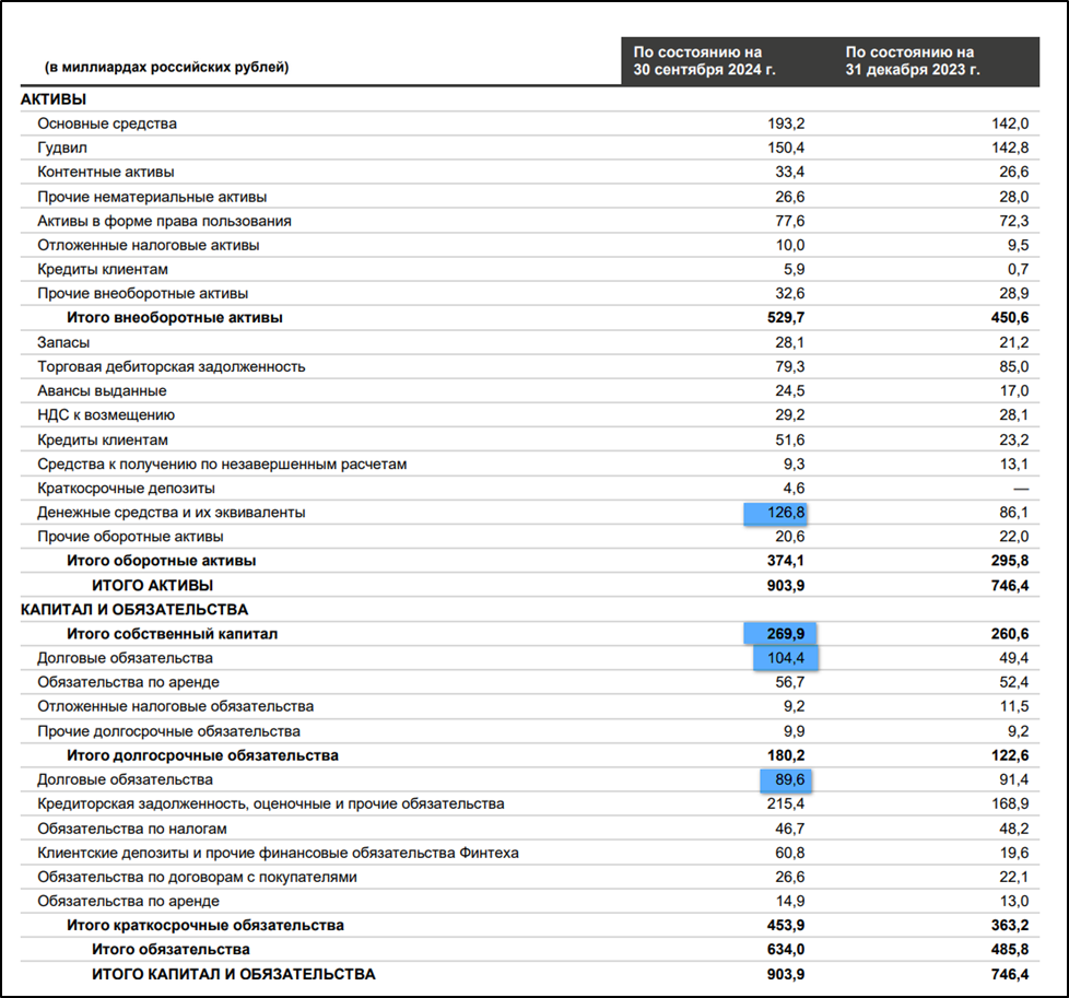 Денежные средства 127 млрд (+47% с начала года).