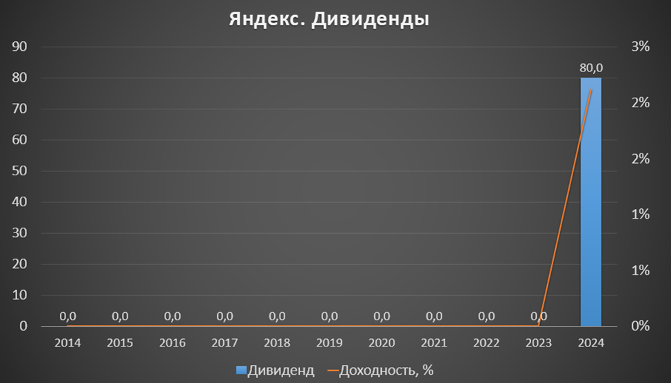 Яндекс впервые выплатил дивиденды с доходностью 2%. И планирует платить их и далее на полугодовой основе.