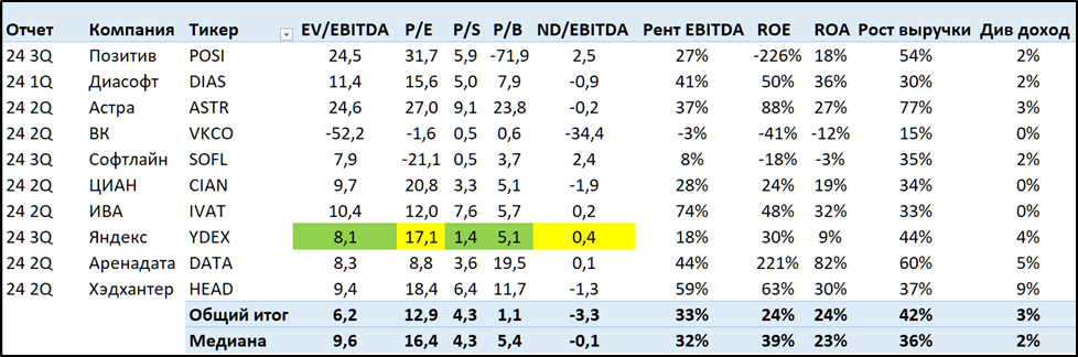 В сравнении с другими IT компаниями РФ, Яндекс выглядит не очень дорого. Плюс темпы роста остаются высокими.
