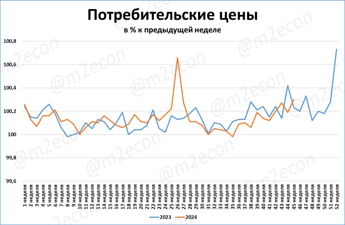 — на 43-й 45-й неделях ситуация изменилась – цены росли быстрее, чем в аналогичную неделю прошлого года.