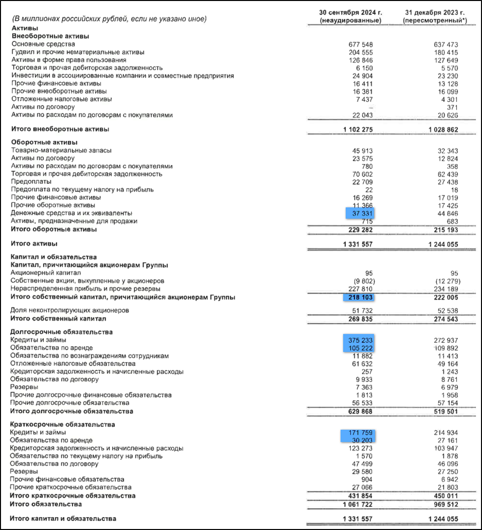 Обязательства по аренде 135,5 млрд (-1% с начала года)