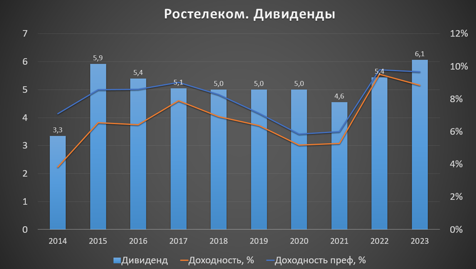 Согласно дивидендной политике, компания стремиться выплачивать дивиденды в размере не менее 5₽ на акцию, но как минимум на 5% больше по сравнению с предыдущим годом.