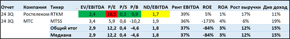 P/E очень высокий из-за убытков в 3Q 2024. Остальные мультипликаторы в целом ниже средних исторических значений.