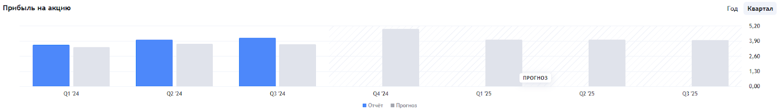 В третьем финансовом квартале (закончился 8 сентября) продажи магазинов Domino's в США выросли на 3% в годовом исчислении, что компенсировало спад на 0,6% в III квартале 2023 года. Улучшение маржи привело к увеличению прибыли на акцию (EPS) на 16% за первые 9 месяцев года по сравнению с аналогичным периодом 2023 года.