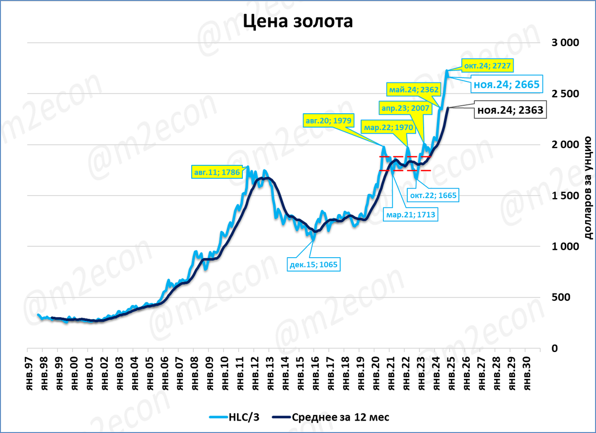 Средняя цена унции золота в ноябре составила 2 665 долларов – близко к историческому максимуму, установленному в октябре.
