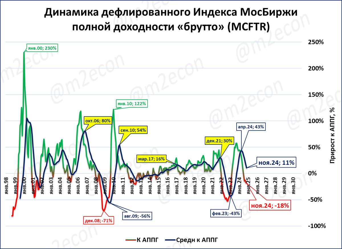 Реальный индекс полной доходности падает. Это пятый месяц падения после 15 месяцев роста подряд.